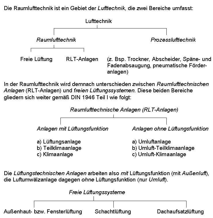 Einteilung der Raumlufttechnik